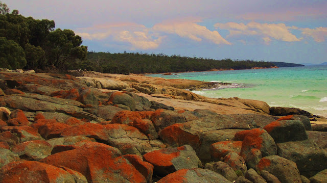 Freycinet peninsular. I walked from the car park via Hazards Beach to Cooks Beach, from there via Mt. Graham to Wineglass Bay and back to the car park.