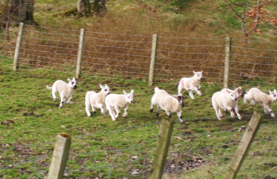 Frolicking lambs