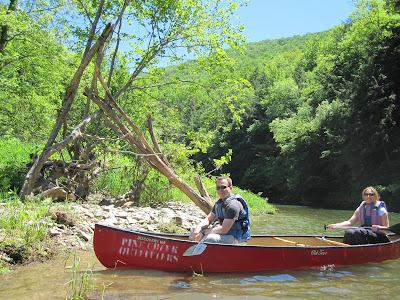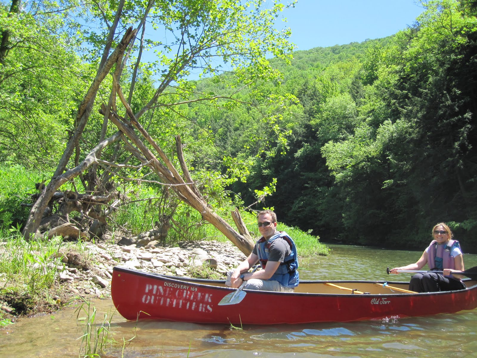 Es war immer noch heiß, die Füße rebellierten auch noch ein wenig, so dass wir uns Kanus schnappten, um den reißenden Pine Creek zu Wasser zu bewältigen.