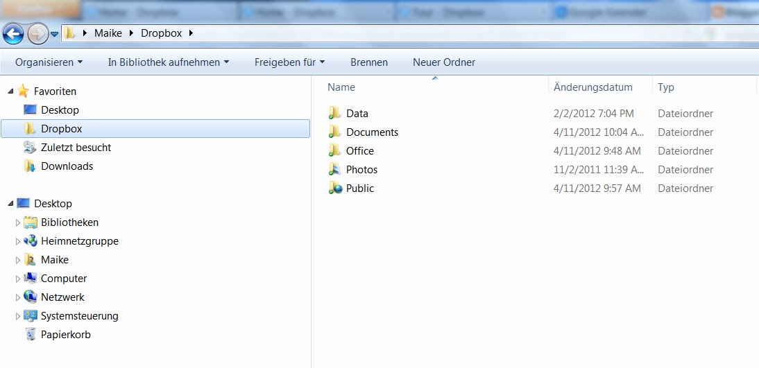 Die benutzt man wie normale Ordner, aber sie werden automatisch mit dem Speicherplatz im Internet synchronisiert. Das bedeutet, dass alles, was ich in diesen Ordnern auf meinem Computer mache, auch auf allen anderen Geräten passiert (wenn ich das so möchte). Wenn ich mit meinem Smartphone ein Foto mache und es im Dropbox-Ordner auf meinem Smartphone abspeichere, ist es auch in meinem Dropbox-Ordner online, in meinem Dropbox-Ordner auf meinem Computer und im Dropbox-Ordner auf meinem Netbook zu Hause. Wenn ich bei der Arbeit an meinem aktuellen Manuskript arbeite, kann ich überall und jederzeit mit meinem Smartphone auf die neueste Version des Manuskripts zugreifen. Außerdem kann man Daten teilen und mit mehreren bearbeiten, Fotos für andere sichtbar machen, und vieles mehr.