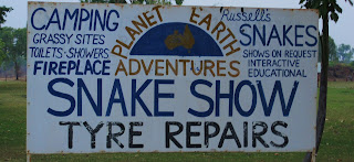 After checking out of my motel on the day I leave, I walk around, having a few hours to kill before my bus to Atherton departs. I pass the pub and the general store and have now almost reached the end of the town when I see a man waving his snake at me.