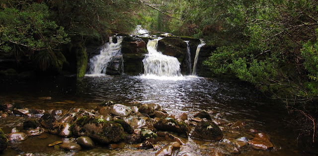 Me sitting on top of a waterfall, feet in the water, having a great view.