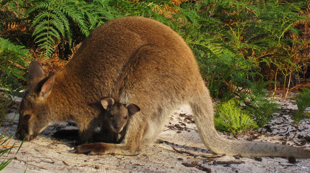 The next day I refilled all my water containers because I wouldn’t have water for the next 30 hours. Unfortunately, there was a mountain to cross, and I’d rather haven’t had to carry the three extra kilos. But to cross it I had to. On top of the mountain I was panting like a hippo and met one of those annoying trail runners who disrespectfully run your multi-day walk in just one day and thus make it look EASY. But he was actually pretty nice. It took me 7 hours to reach the next campsite which was located at picturesque Wineglass Bay. At the campsite, there were a few anglers, but I found a lonely spot behind the foredune. I was joined by wallabies, all kinds of birds, and two possums who made a lot of noise at night when they played with my pots which I had left outside. Also, I found a biggish spider in my tent which I didn’t dare to catch and throw out because I didn’t know whether or not it could kill me. The idea to kill it first didn’t cross my mind at the time because it was too big not to be considered a sentient being. Someone told me later that these spiders aren’t able to kill people but their bites cause big ugly ulcers, so good call to leave it alone.