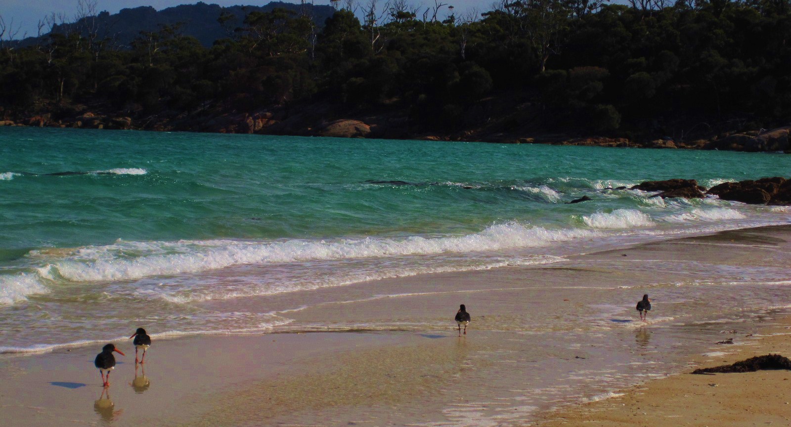 Australia is big, Tasmania is small. After one hour of walking I ran into The Boys, two gentlemen I had met on the Overland Track. Apart from them I didn’t see many people, especially once I left the day use area. I ended up at Cooks Beach where there was only one other person, who I had a nice chat with and who shared some of his candy-snakes with me. Later, another couple joined us at the campsite, but it was still lonely enough.
