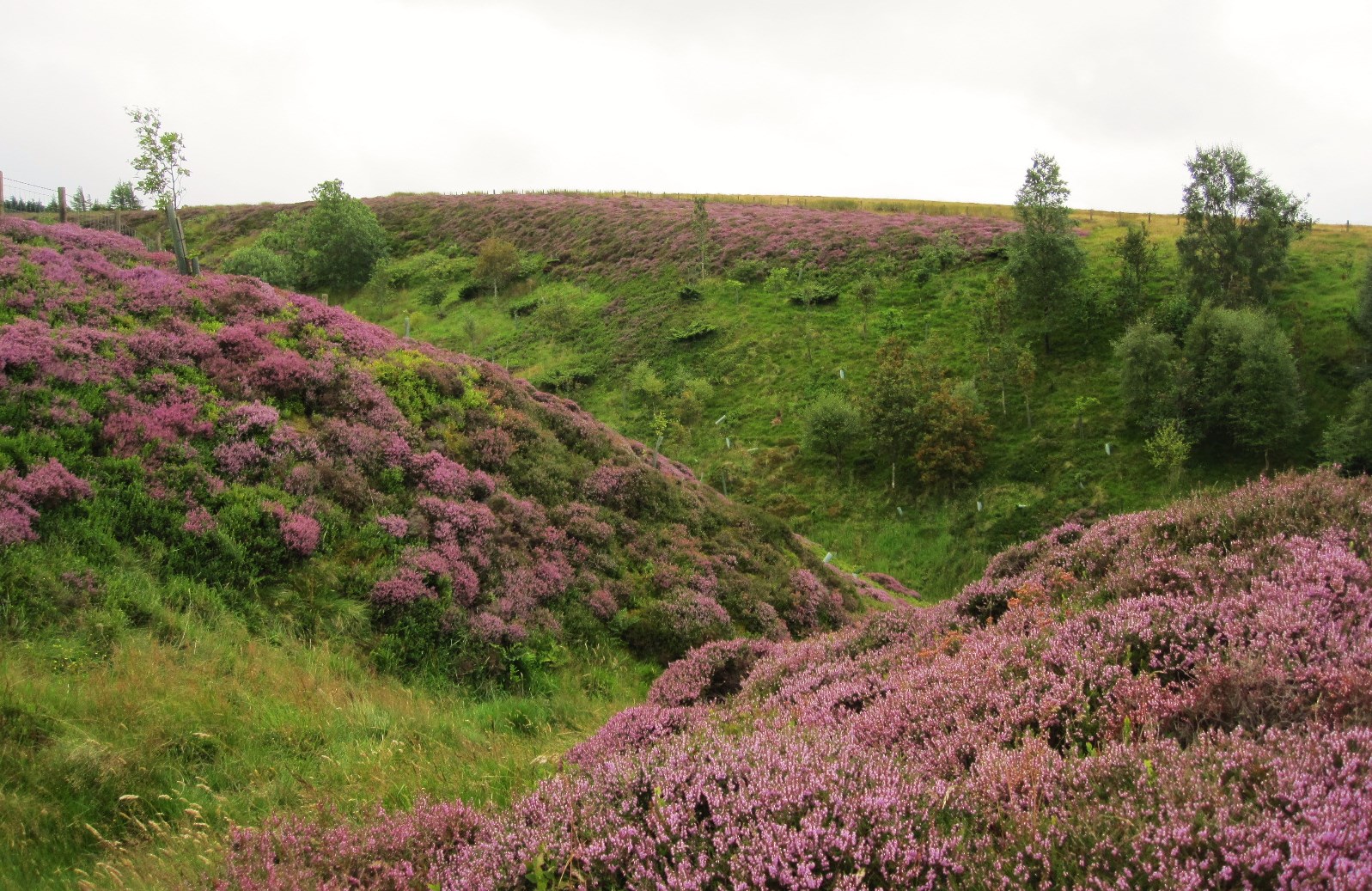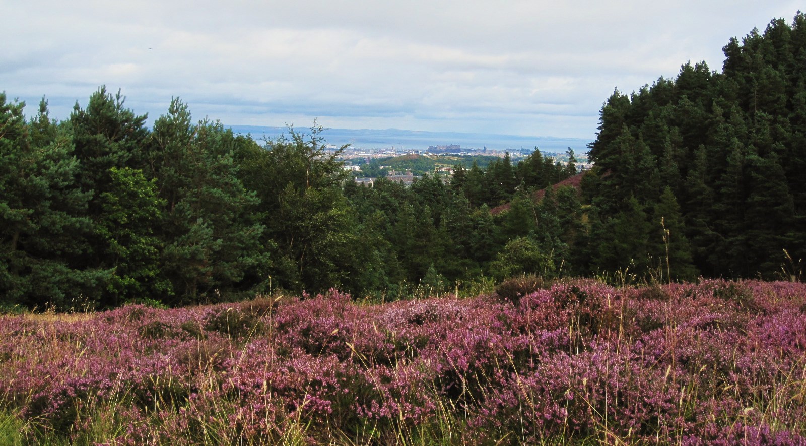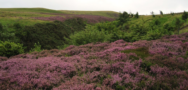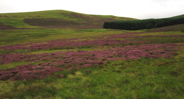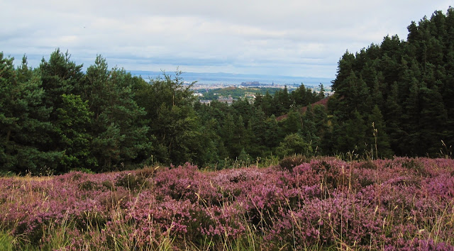 After the massive birthday dinner my flatmate made for me and friends with mackerel in rhubarb-ginger-sauce, tatties, runner beans, roasted courgettes and orange-courgette cake I put all these calories to good use the following day by doing another half-day trip to the Pentlands. Scotland in August is tinted purple with blooming heather everywhere. The weather was a warm, light drizzle with intermittent dry spells and one or two heavier showers - fine Scottish walking conditions.