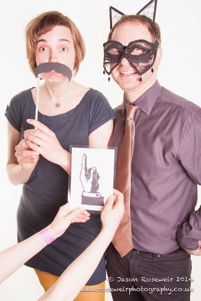 At last weekend’s dance event, the first ever Edinburgh Balboa Exchange, the organisers had a photobooth with props. And an excellent photographer. And since the pics are on Facebook and I am not anymore, I might as well put them up here.