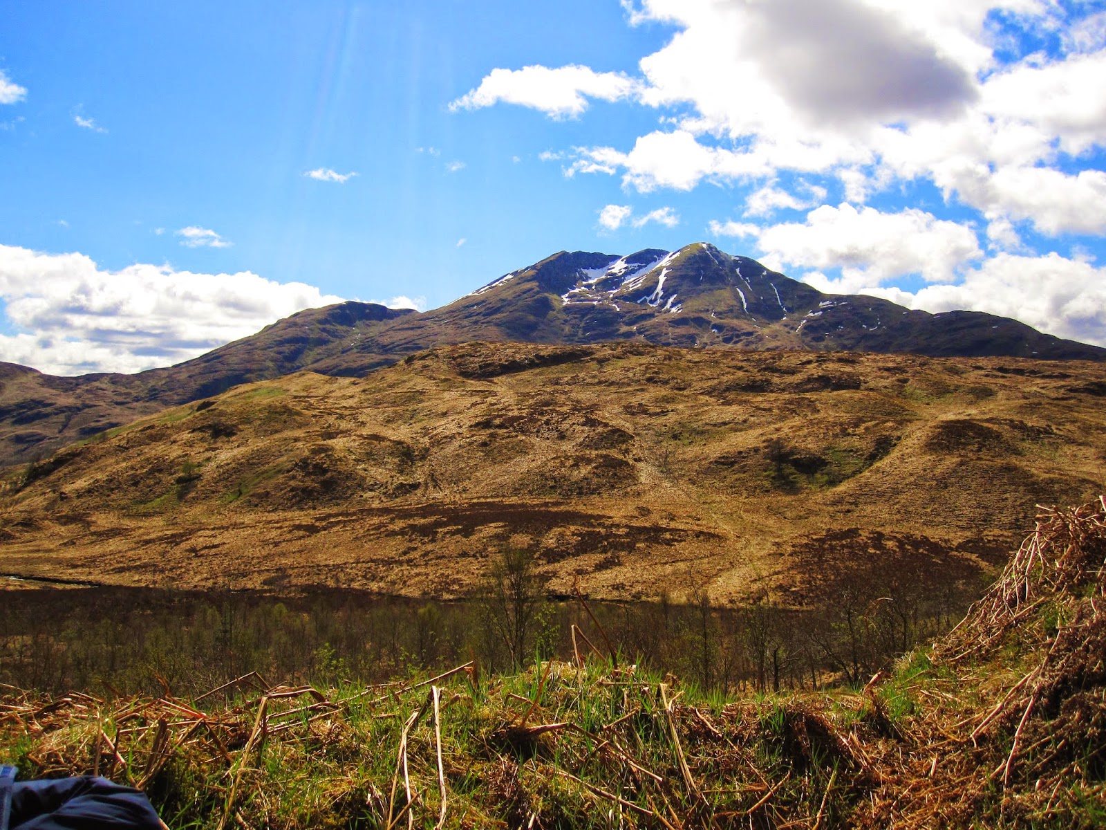 The weather forecast was mixed, with a cool night and showers on Sunday. The first day, though, was sunny and pleasant. We walked towards Loch Lomond with beautiful views of Ben Lomond on our left.