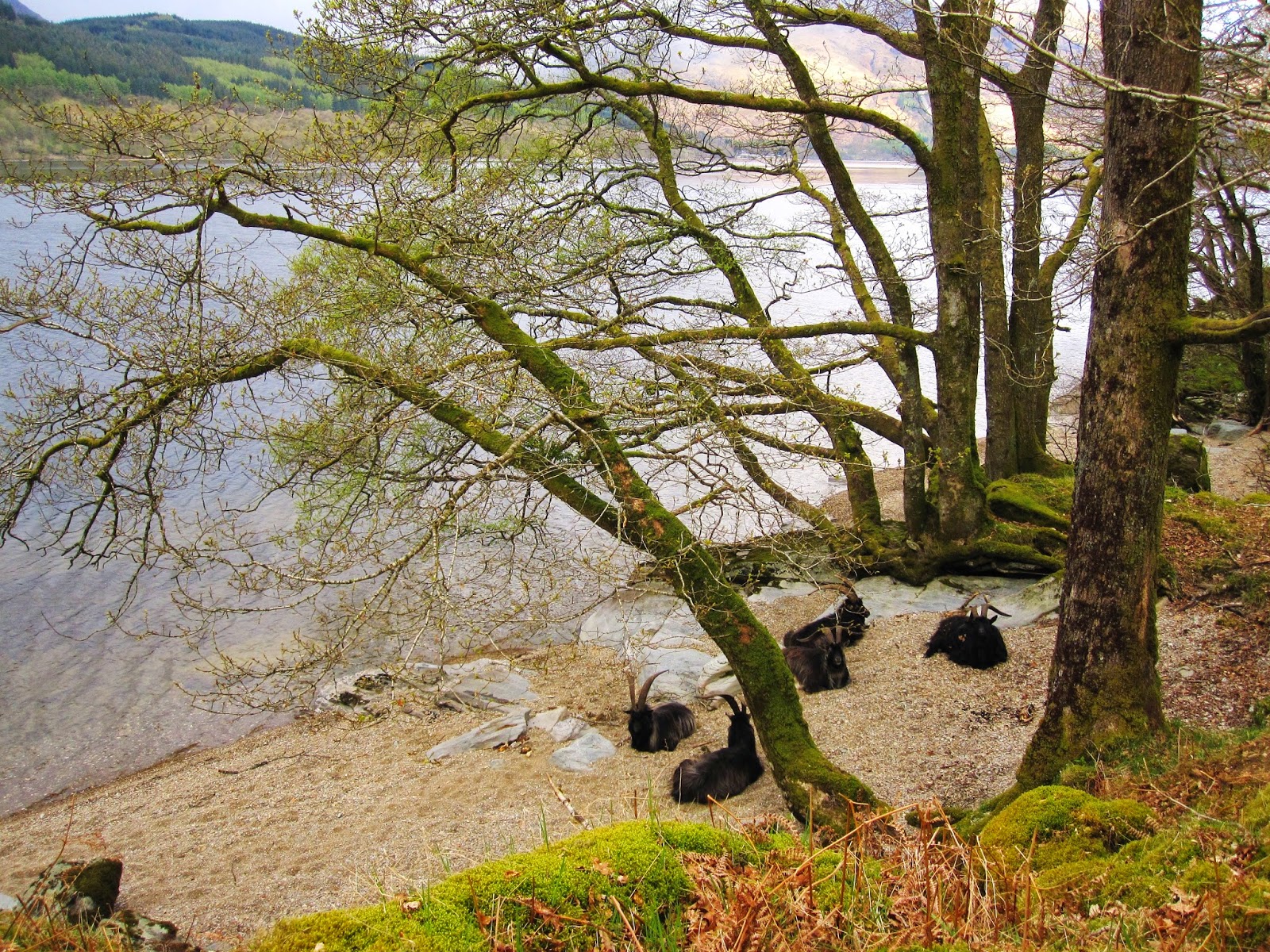 The next morning I made coffee and tea for everyone with Loch Lomond water. I had brought my gas stove along and didn’t regret it. I handed out peanut butter and jam wraps which were much appreciated. We said our goodbyes to the Weegies in the bothy, walked back the way we came along the West Highland Way, and then kept going to Inversnaid where we had more hot beverages and scones while sitting out a shower. We spotted the mountain goats I remembered from the first time I had been there, and I also remembered the smell. And right enough, once we were past them, with the wind in our backs, they did smell.