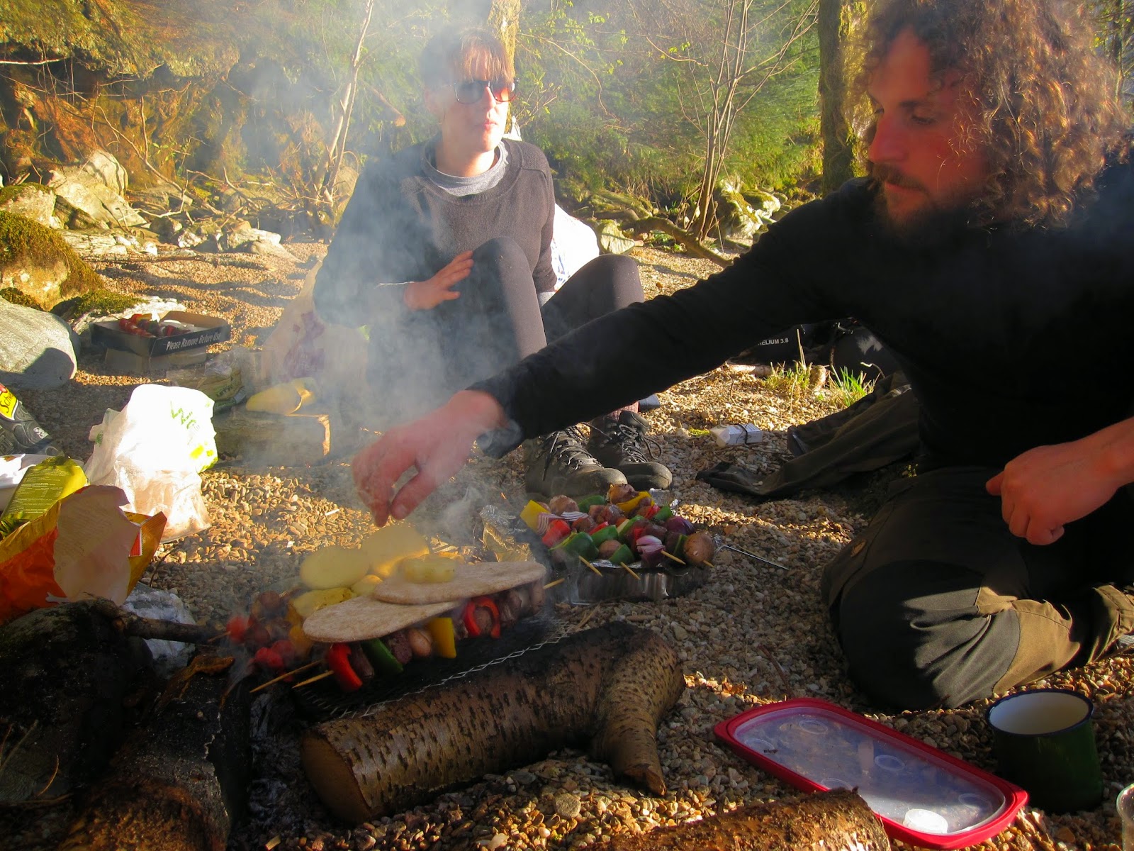 For dinner, we had lamb / beef / halloumi / veggie skewers, fire-roasted pears and dried figs, and a bottle of whisky. It got really cold, but near the fire and with plenty of layers on it was alright.