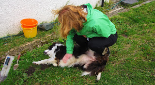 We drive to the hill and encounter some funnily dressed folks, the hunting gentry… Walking up the track, we decide against climbing Ben Stac today, as it is covered in clouds. We walk back instead and find some mushrooms for dinner.