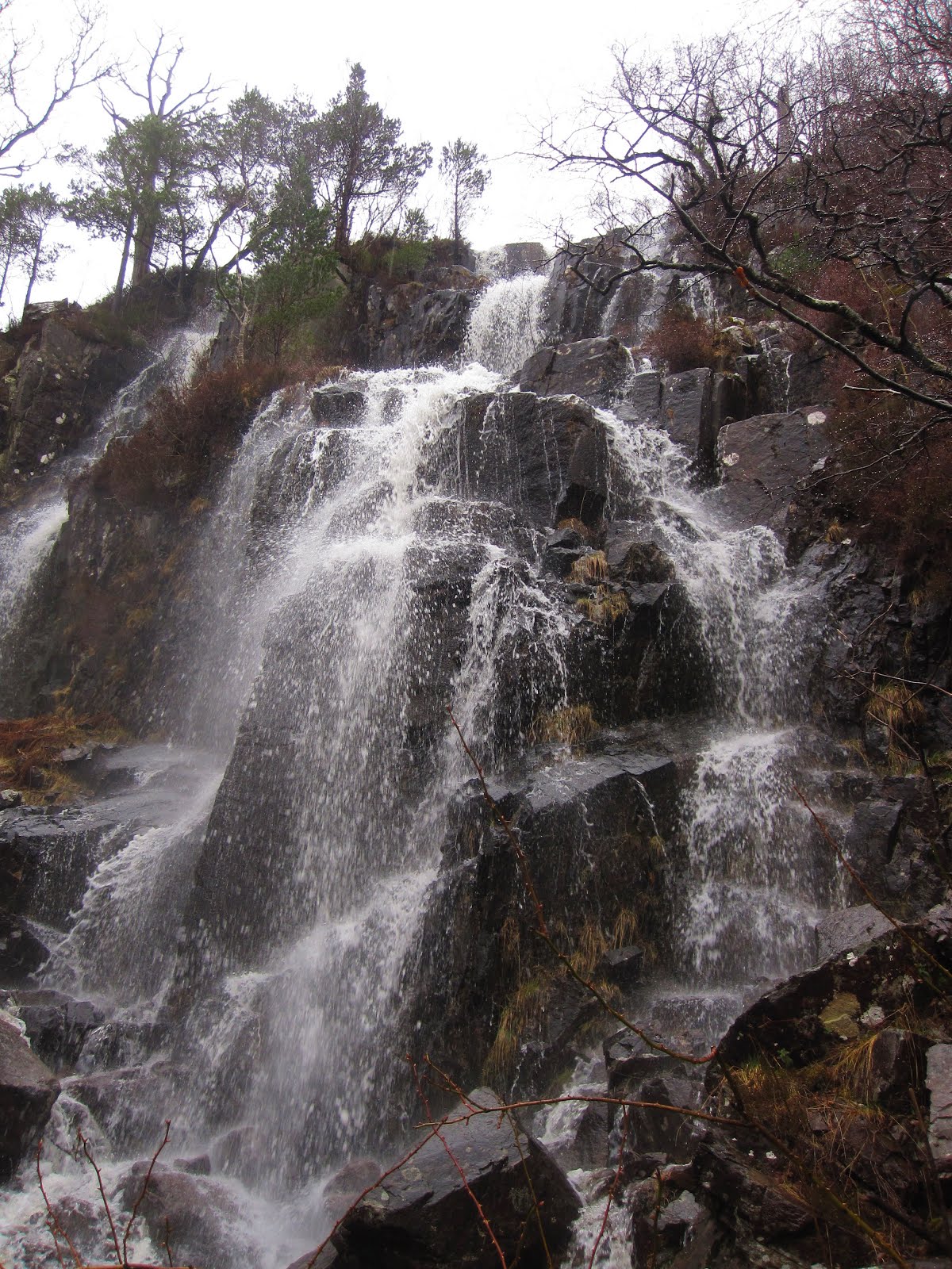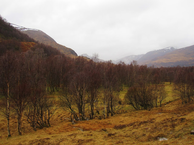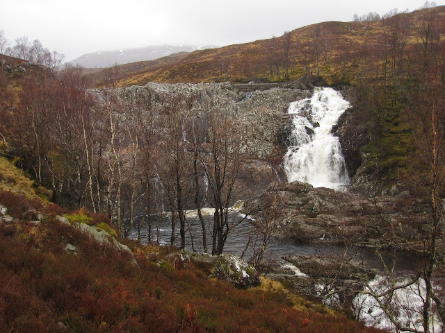 It is Easter Saturday and the weather is shite. So we go for a lovely low level walk, the Kinlochleven - Blackwater circuit (click). It is a slow climb over 5 miles up to the Blackwater dam, across the dam, and back on the other side of the river. The glen was dammed over a hundred years ago, combining three lochs into one huge reservoir, to provide hydro-energy for Kinlochleven’s aluminium smelter.