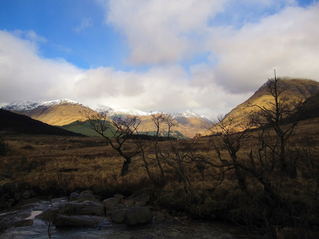 The hardest bit is to decide which walk to do - Beinn a’ Chrùlaiste which is boring-looking and boggy, but possibly less steep and offering nice views of less boring hills. Or, staying low, and walking through the two valleys on each side of Buachaille Etive Beag, Lairig Eilde and Lairig Gartain. This would mean walking around the mountain we climbed on the first day. Or, driving on a single track road through Glen Etive all the way to the end and climbing Glas Beinn Mhòr, another munro.