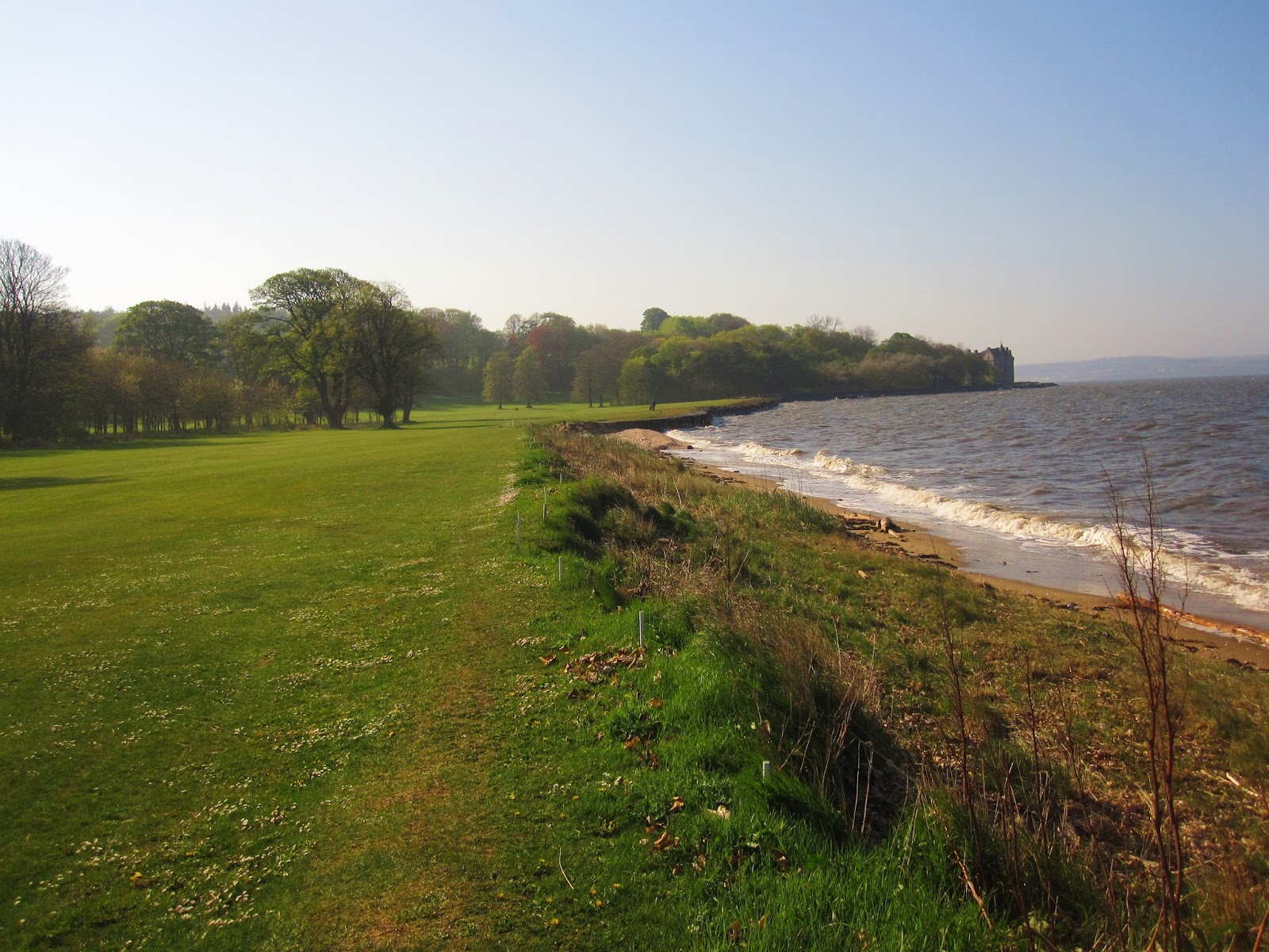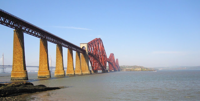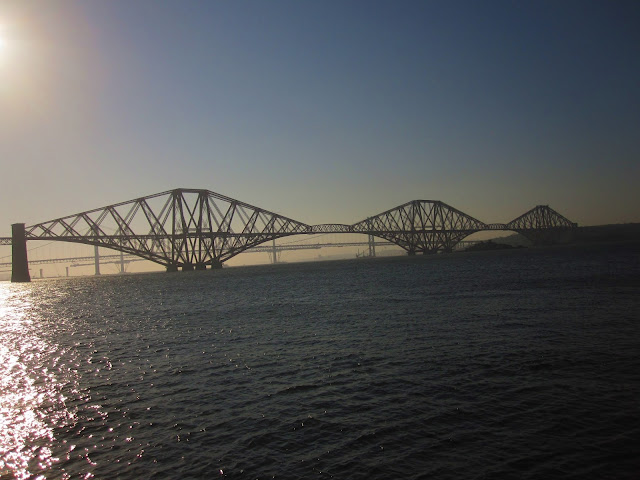 Back in Queensferry we sit on a wall by the water for hours, getting a Scottish tan (=sunburn), until we need to pee. We have dinner in a pub, and he gives me a lift home.