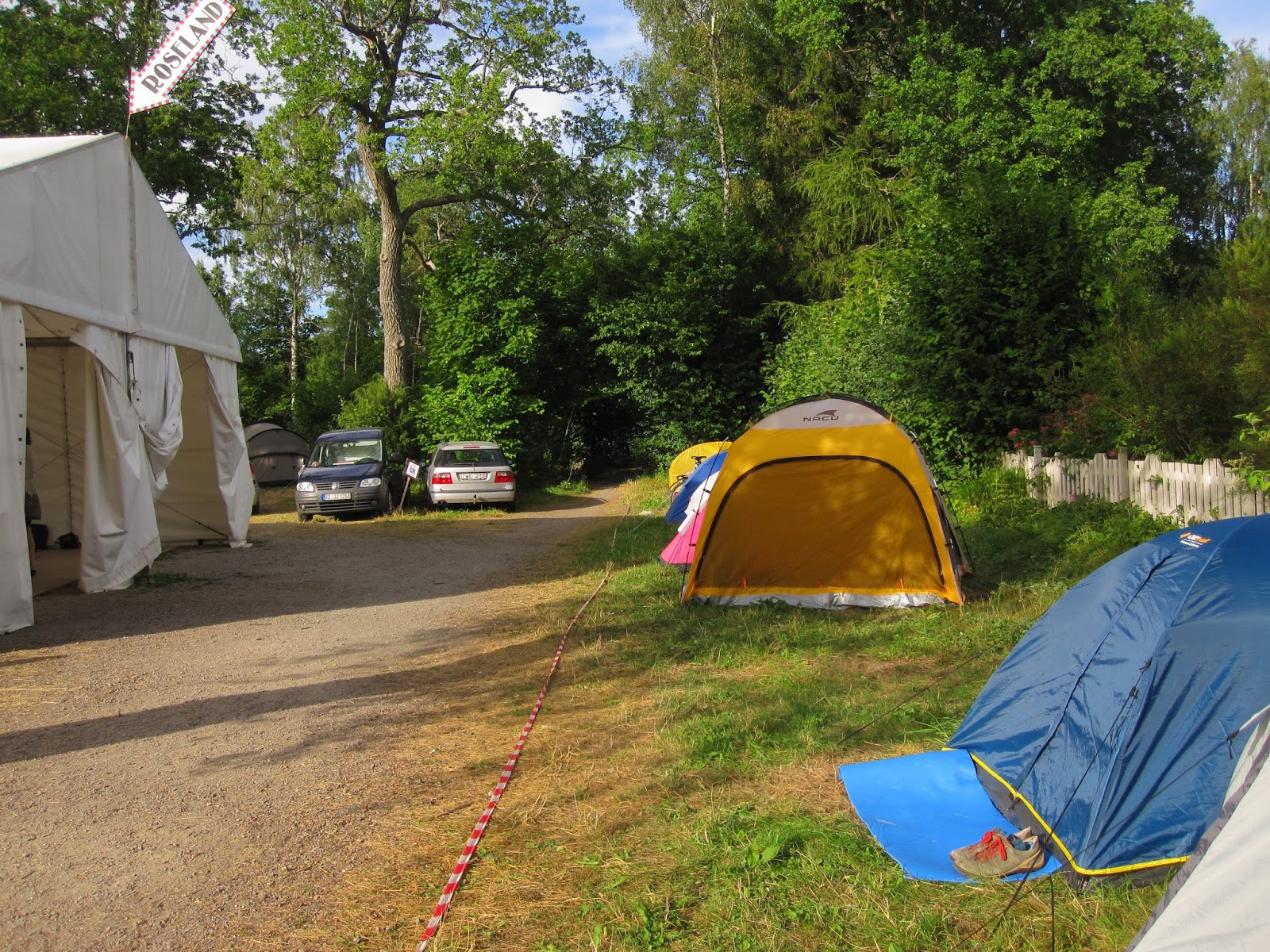 I have successfully negotiated my bus-plane-train-bus-bus trip. Everything worked out perfectly, and it looks like I get to pitch my tent in bright sunshine. I even succeeded in getting some cash - not enough, but some. Herräng is a tiny village, the next cash machine is seven miles away.