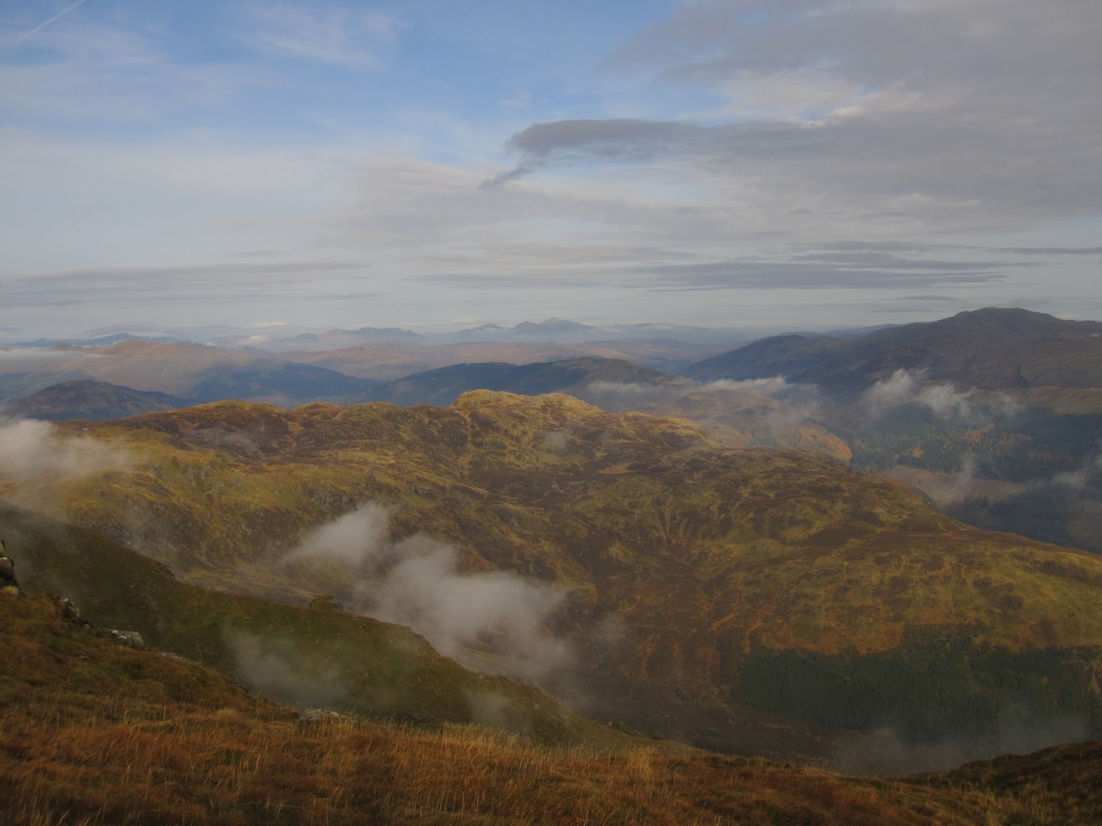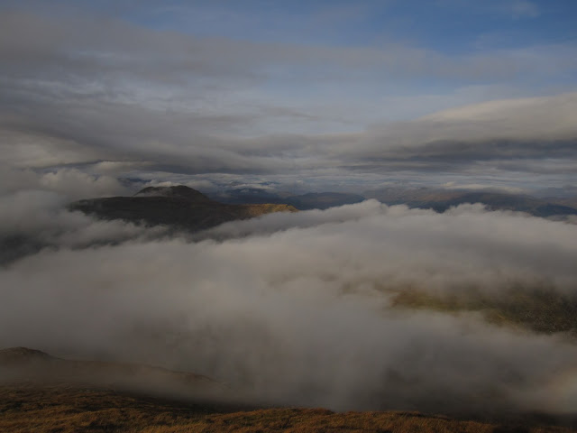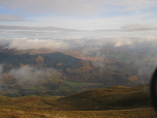 Ben Ledi 2016 Nov 02 - hiking scotland My friend Ben and I walked up Ben Ledi last Sunday. The autumn leaves were in yellows, reds and oranges, and we walked over the clouds. Comments I like to walk above the clouds. It’s like “Hah, you may block the sun down there, but not for me right now!” - der Erich