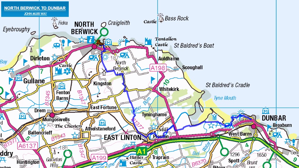 I left North Berwick at 10.30 am and followed the well-signed route south, past North Berwick Law. The route desription on walkhighlands.co.uk (