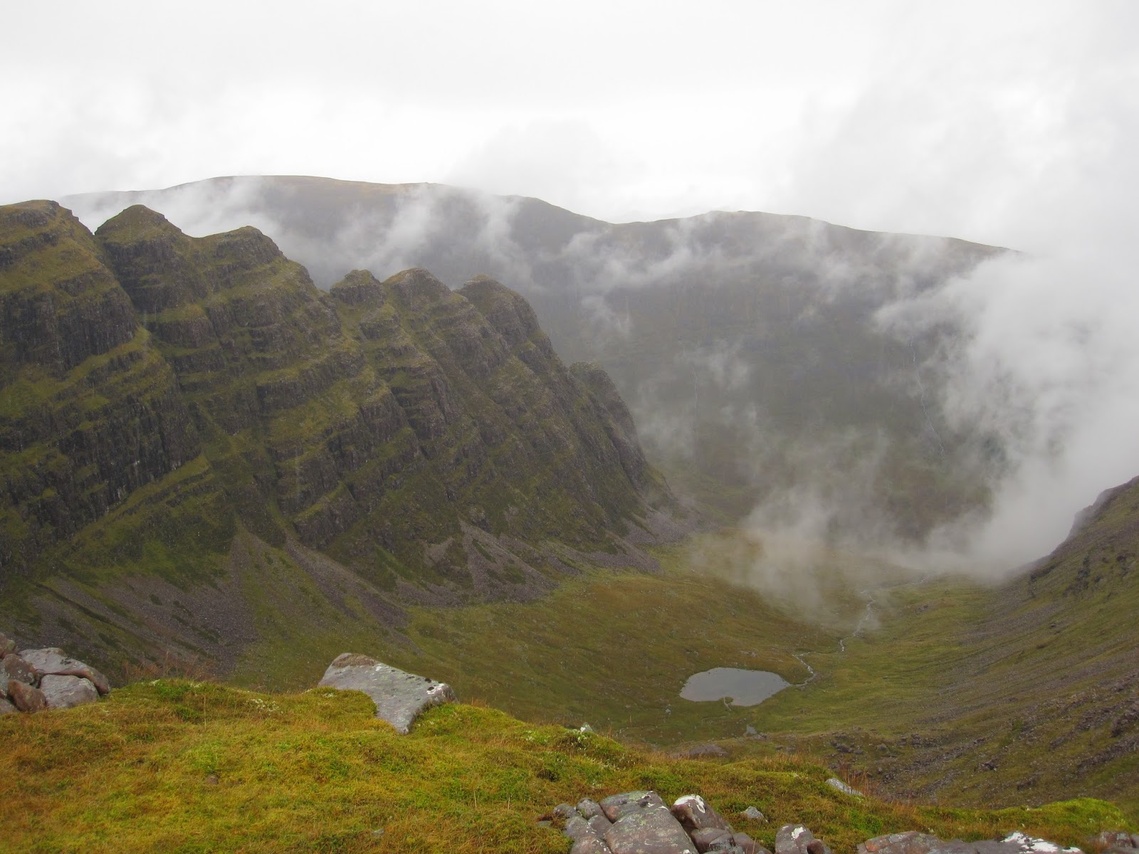 But no need! Traffic turns out fairly light, and my little car is strong and enjoys the climb. Up at the bealach, I walk up to the mast and turn right - and walk right up the wrong bump first. Oops. Eventually, I find the right ridge to follow - it would have been easier if the clouds were higher up. Two other walkers are ahead of me, and that’s good to know. With scrambles, I seem to need permission to go, but if other people are doing them it must be ok.