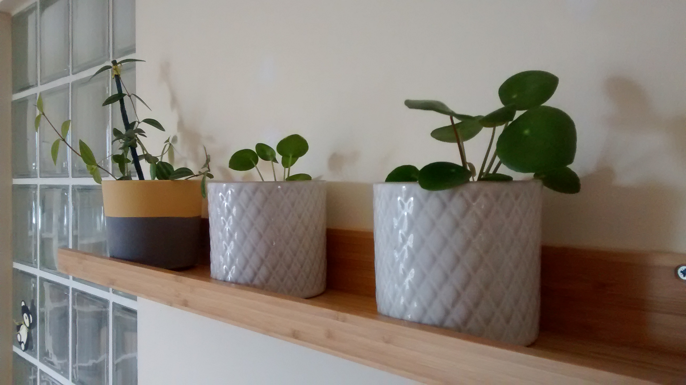 Chinese money plants and a peperomia quadrangularis